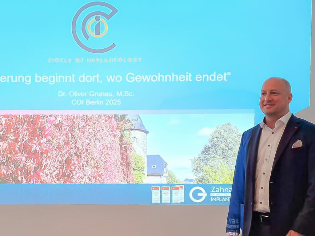 Im Rahmen eines fachlichen Expertentreffens stellte Dr. Oliver Grunau klinische Erfahrungen aus der täglichen Praxis vor und diskutierte diese mit spezialisierten Kolleginnen und Kollegen. Die Teilnehmer dieses Austauschs verfügen ebenfalls über weiterführende Spezialisierungen und befassen sich regelmäßig mit komplexen implantologischen Behandlungsfällen